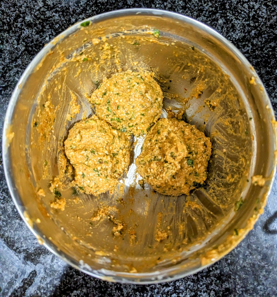 I walk you through my parents’ method of frying for making perfect vadas, south Indian savory donuts. You could easily make them in a faster and more rustic way of just dropping batter into oil. I like this method, though, because it makes a nice smooth surface and ensures that you get an even crisp on both sides, so it makes a better bed for the salmon. Regardless, carefully monitor the heat as you go. Smoking oil will burn the patty and oil too cool will result in a greasy dish. Lay the patties on a paper towel until you’re ready to plate.